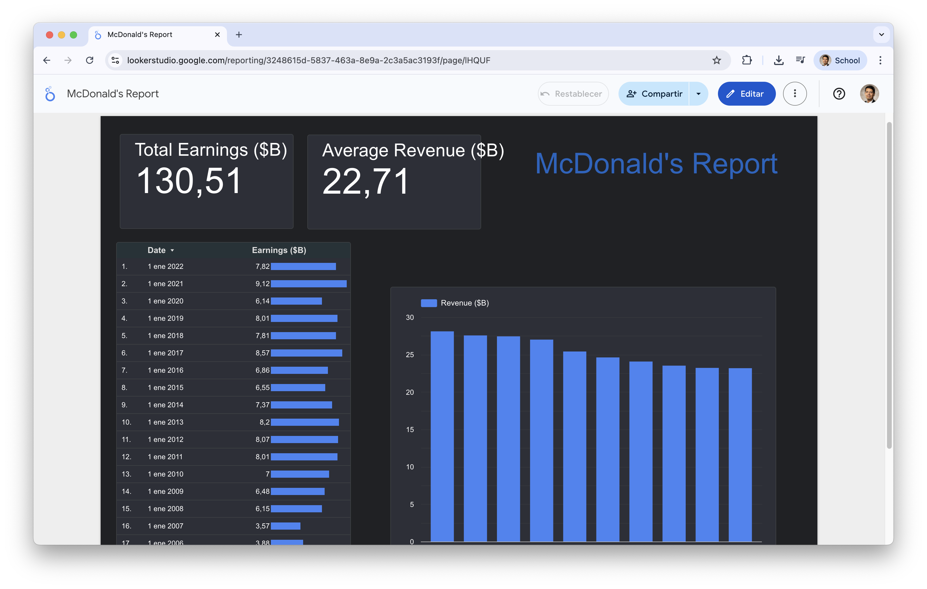 Free online tool by Google for building interactive dashboards and reports. Works directly in the web browser and it connects to many data sources: