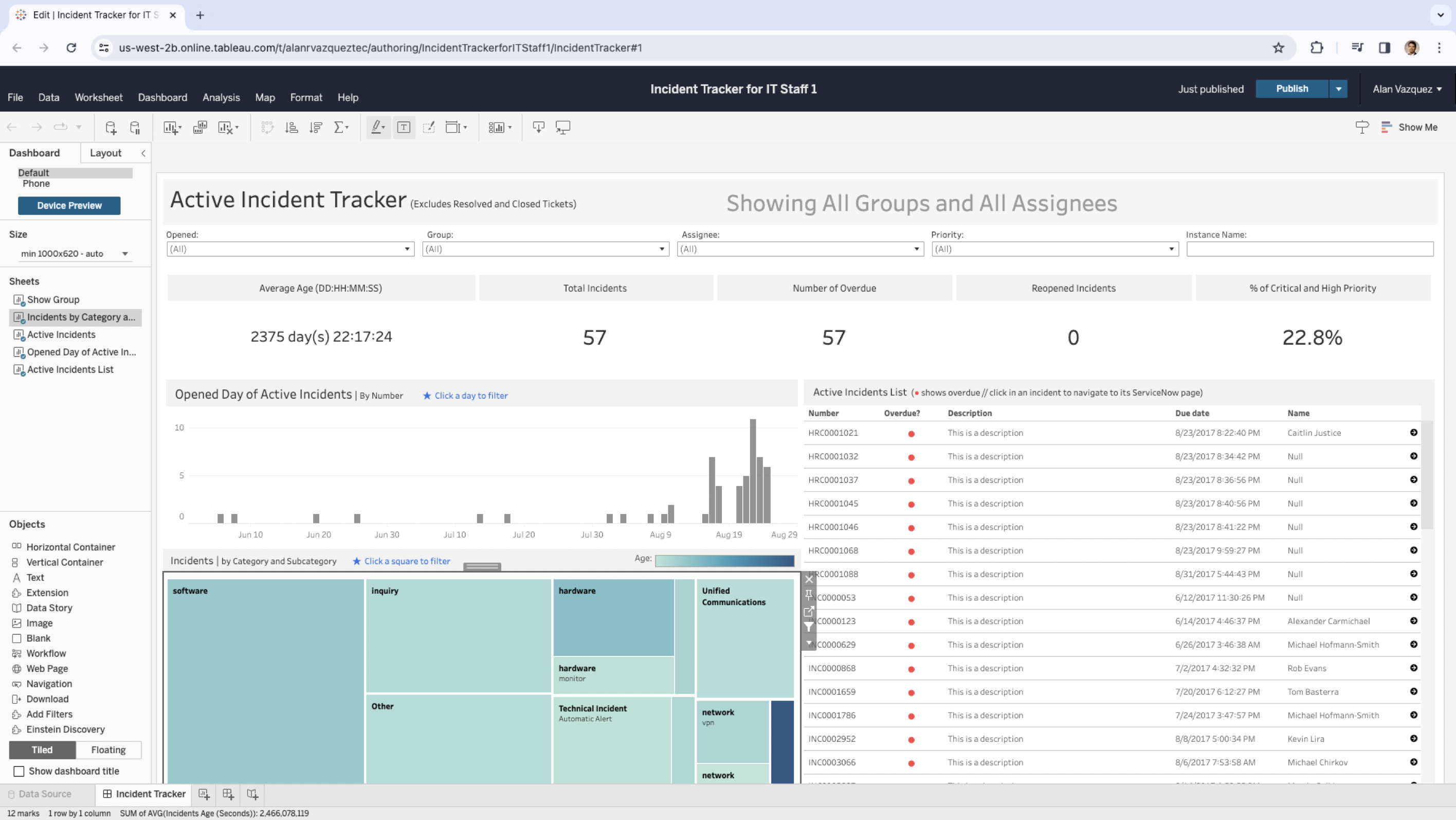 We can place the table anywhere in the dashboard canvas.