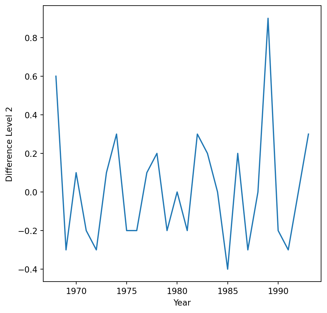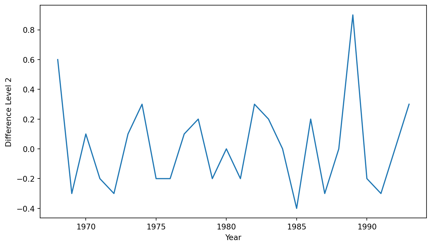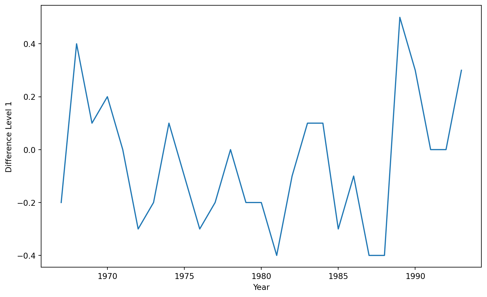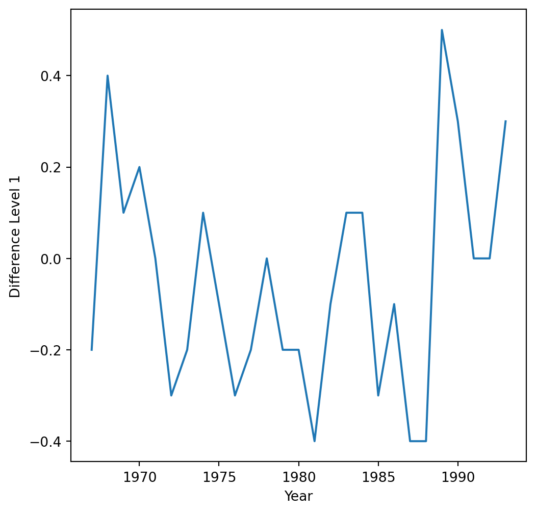 In statsmodels, we apply the integration operator using the pre-loaded diff() function. The function’s k_diff argument specifies the order or level of the operator.