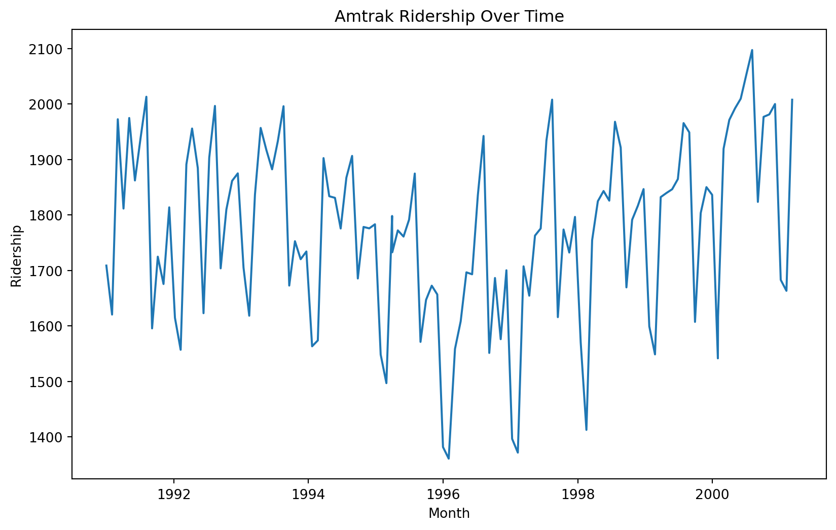 Let’s consider again the dataset in the file “Amtrak.xlsx.” The file contains records of Amtrak passenger numbers from January 1991 to March 2004.