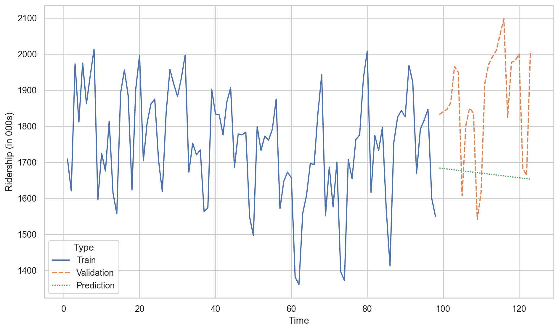 Y_val_pred_lin = LRmodelAmtrak.predict(X_valid)
