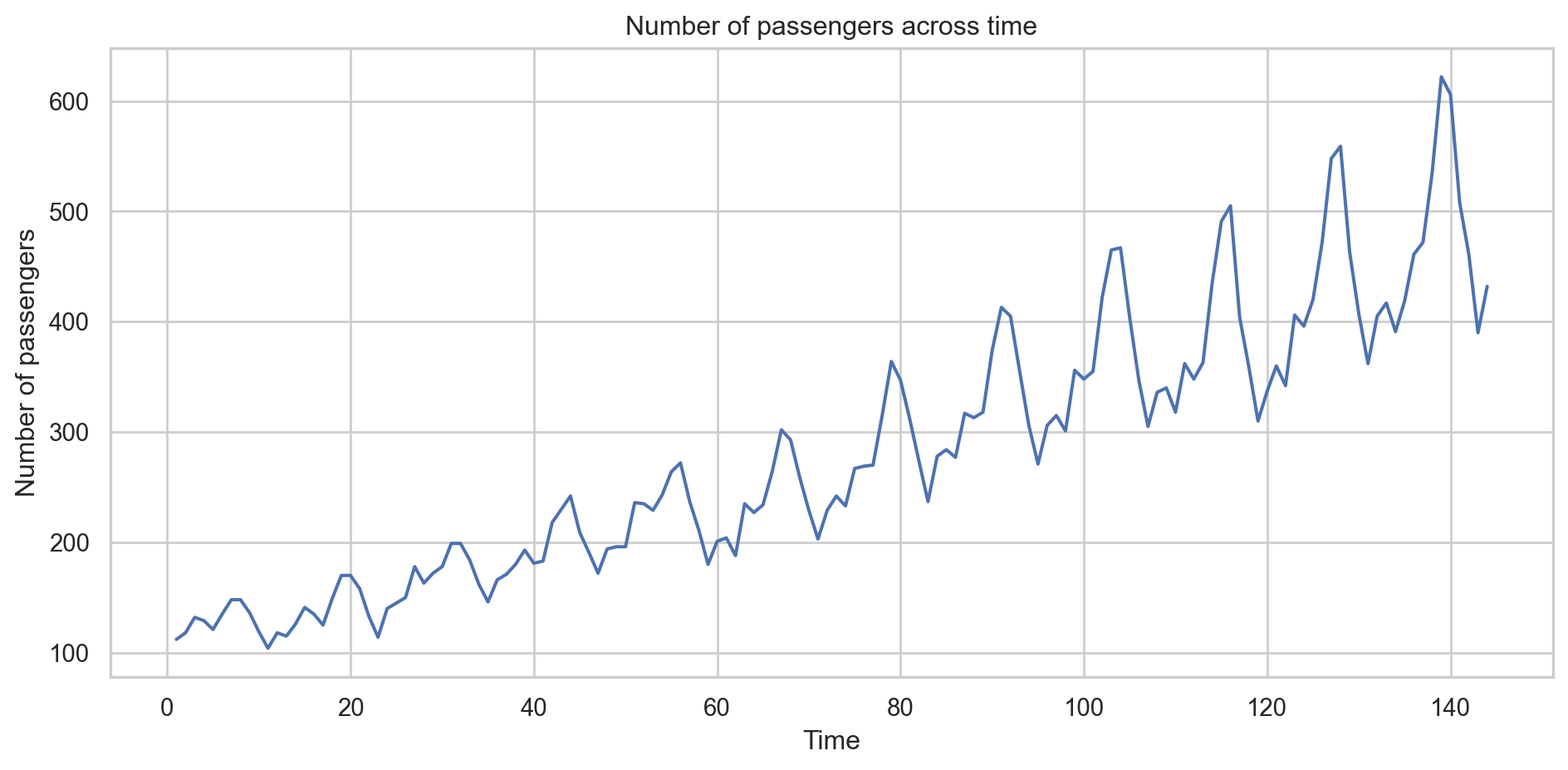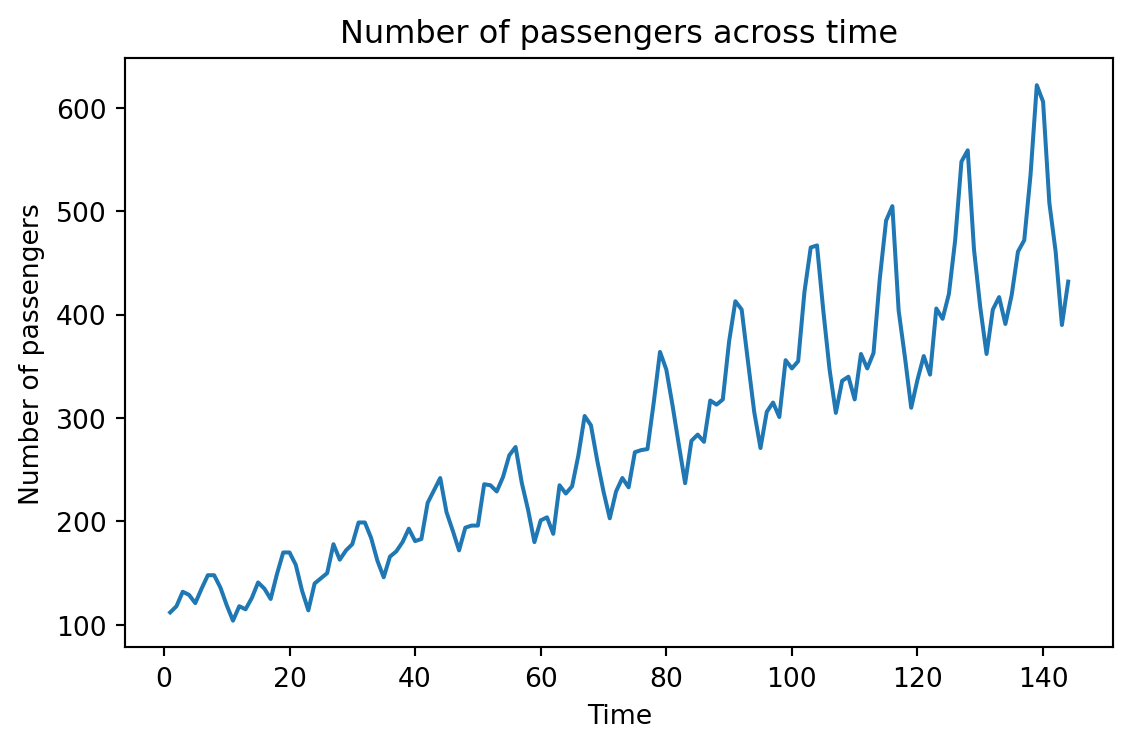 To see it, let’s go back to the Airline data, which contains the number of passengers of an international airline per month between 1949 and 1960.