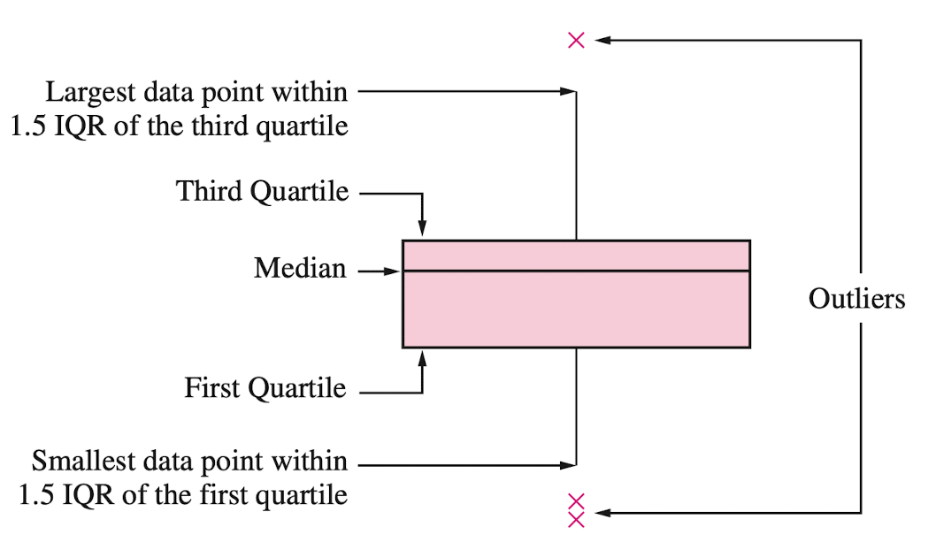 A box plot is a graphic that presents the median, the first and third quartiles, and any “outliers” present in the sample.