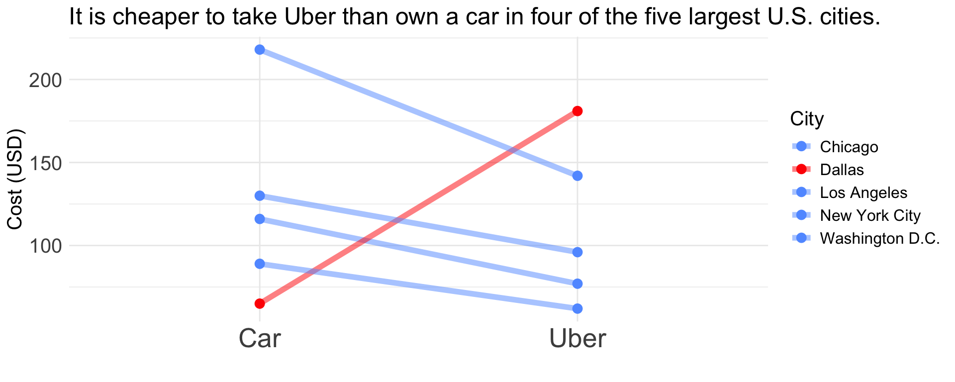Principle 1: It is cheaper to take Uber than to own a car in four of the five largest cities in the USA.