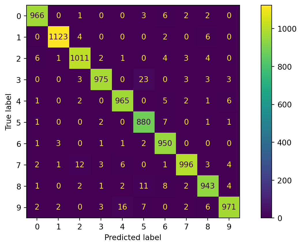 Epoch 1/10 1/938 ━━━━━━━━━━━━━━━━━━━━ 6:22 408ms/step - accuracy: 0.1250 - loss: 2.3058 51/938 ━━━━━━━━━━━━━━━━━━━━ 0s 1ms/step - accuracy: 0.6019 - loss: 1.3875 103/938 ━━━━━━━━━━━━━━━━━━━━ 0s 989us/step - accuracy: 0.6986 - loss: 1.0585 158/938 ━━━━━━━━━━━━━━━━━━━━ 0s 964us/step - accuracy: 0.7490 - loss: 0.8833 212/938 ━━━━━━━━━━━━━━━━━━━━ 0s 954us/step - accuracy: 0.7784 - loss: 0.7786 266/938 ━━━━━━━━━━━━━━━━━━━━ 0s 949us/step - accuracy: 0.7988 - loss: 0.7056 320/938 ━━━━━━━━━━━━━━━━━━━━ 0s 946us/step - accuracy: 0.8140 - loss: 0.6515 374/938 ━━━━━━━━━━━━━━━━━━━━ 0s 944us/step - accuracy: 0.8259 - loss: 0.6086 425/938 ━━━━━━━━━━━━━━━━━━━━ 0s 949us/step - accuracy: 0.8351 - loss: 0.5756 473/938 ━━━━━━━━━━━━━━━━━━━━ 0s 960us/step - accuracy: 0.8425 - loss: 0.5492 526/938 ━━━━━━━━━━━━━━━━━━━━ 0s 959us/step - accuracy: 0.8494 - loss: 0.5243 579/938 ━━━━━━━━━━━━━━━━━━━━ 0s 959us/step - accuracy: 0.8554 - loss: 0.5027 633/938 ━━━━━━━━━━━━━━━━━━━━ 0s 958us/step - accuracy: 0.8608 - loss: 0.4833 684/938 ━━━━━━━━━━━━━━━━━━━━ 0s 960us/step - accuracy: 0.8654 - loss: 0.4670 736/938 ━━━━━━━━━━━━━━━━━━━━ 0s 961us/step - accuracy: 0.8695 - loss: 0.4521 788/938 ━━━━━━━━━━━━━━━━━━━━ 0s 962us/step - accuracy: 0.8733 - loss: 0.4385 839/938 ━━━━━━━━━━━━━━━━━━━━ 0s 963us/step - accuracy: 0.8767 - loss: 0.4265 891/938 ━━━━━━━━━━━━━━━━━━━━ 0s 964us/step - accuracy: 0.8798 - loss: 0.4153 938/938 ━━━━━━━━━━━━━━━━━━━━ 1s 1ms/step - accuracy: 0.8825 - loss: 0.4057 - val_accuracy: 0.9671 - val_loss: 0.1021 Epoch 2/10 1/938 ━━━━━━━━━━━━━━━━━━━━ 6s 7ms/step - accuracy: 0.9688 - loss: 0.1136 51/938 ━━━━━━━━━━━━━━━━━━━━ 0s 1ms/step - accuracy: 0.9747 - loss: 0.0826 102/938 ━━━━━━━━━━━━━━━━━━━━ 0s 999us/step - accuracy: 0.9753 - loss: 0.0827 153/938 ━━━━━━━━━━━━━━━━━━━━ 0s 994us/step - accuracy: 0.9748 - loss: 0.0850 205/938 ━━━━━━━━━━━━━━━━━━━━ 0s 987us/step - accuracy: 0.9742 - loss: 0.0867 258/938 ━━━━━━━━━━━━━━━━━━━━ 0s 978us/step - accuracy: 0.9739 - loss: 0.0874 311/938 ━━━━━━━━━━━━━━━━━━━━ 0s 973us/step - accuracy: 0.9737 - loss: 0.0882 365/938 ━━━━━━━━━━━━━━━━━━━━ 0s 967us/step - accuracy: 0.9734 - loss: 0.0888 418/938 ━━━━━━━━━━━━━━━━━━━━ 0s 966us/step - accuracy: 0.9732 - loss: 0.0892 453/938 ━━━━━━━━━━━━━━━━━━━━ 0s 1ms/step - accuracy: 0.9731 - loss: 0.0895 507/938 ━━━━━━━━━━━━━━━━━━━━ 0s 996us/step - accuracy: 0.9729 - loss: 0.0898 560/938 ━━━━━━━━━━━━━━━━━━━━ 0s 992us/step - accuracy: 0.9729 - loss: 0.0899 614/938 ━━━━━━━━━━━━━━━━━━━━ 0s 987us/step - accuracy: 0.9728 - loss: 0.0898 668/938 ━━━━━━━━━━━━━━━━━━━━ 0s 983us/step - accuracy: 0.9728 - loss: 0.0897 722/938 ━━━━━━━━━━━━━━━━━━━━ 0s 980us/step - accuracy: 0.9728 - loss: 0.0896 777/938 ━━━━━━━━━━━━━━━━━━━━ 0s 976us/step - accuracy: 0.9728 - loss: 0.0895 831/938 ━━━━━━━━━━━━━━━━━━━━ 0s 973us/step - accuracy: 0.9728 - loss: 0.0893 884/938 ━━━━━━━━━━━━━━━━━━━━ 0s 972us/step - accuracy: 0.9729 - loss: 0.0892 938/938 ━━━━━━━━━━━━━━━━━━━━ 0s 970us/step - accuracy: 0.9729 - loss: 0.0890 938/938 ━━━━━━━━━━━━━━━━━━━━ 1s 1ms/step - accuracy: 0.9729 - loss: 0.0890 - val_accuracy: 0.9658 - val_loss: 0.1001 Epoch 3/10 1/938 ━━━━━━━━━━━━━━━━━━━━ 5s 6ms/step - accuracy: 0.9688 - loss: 0.0927 55/938 ━━━━━━━━━━━━━━━━━━━━ 0s 940us/step - accuracy: 0.9798 - loss: 0.0659 107/938 ━━━━━━━━━━━━━━━━━━━━ 0s 954us/step - accuracy: 0.9811 - loss: 0.0602 160/938 ━━━━━━━━━━━━━━━━━━━━ 0s 950us/step - accuracy: 0.9816 - loss: 0.0579 214/938 ━━━━━━━━━━━━━━━━━━━━ 0s 947us/step - accuracy: 0.9815 - loss: 0.0571 268/938 ━━━━━━━━━━━━━━━━━━━━ 0s 945us/step - accuracy: 0.9815 - loss: 0.0569 322/938 ━━━━━━━━━━━━━━━━━━━━ 0s 943us/step - accuracy: 0.9816 - loss: 0.0569 376/938 ━━━━━━━━━━━━━━━━━━━━ 0s 943us/step - accuracy: 0.9816 - loss: 0.0570 431/938 ━━━━━━━━━━━━━━━━━━━━ 0s 940us/step - accuracy: 0.9816 - loss: 0.0572 485/938 ━━━━━━━━━━━━━━━━━━━━ 0s 938us/step - accuracy: 0.9816 - loss: 0.0573 539/938 ━━━━━━━━━━━━━━━━━━━━ 0s 937us/step - accuracy: 0.9815 - loss: 0.0575 593/938 ━━━━━━━━━━━━━━━