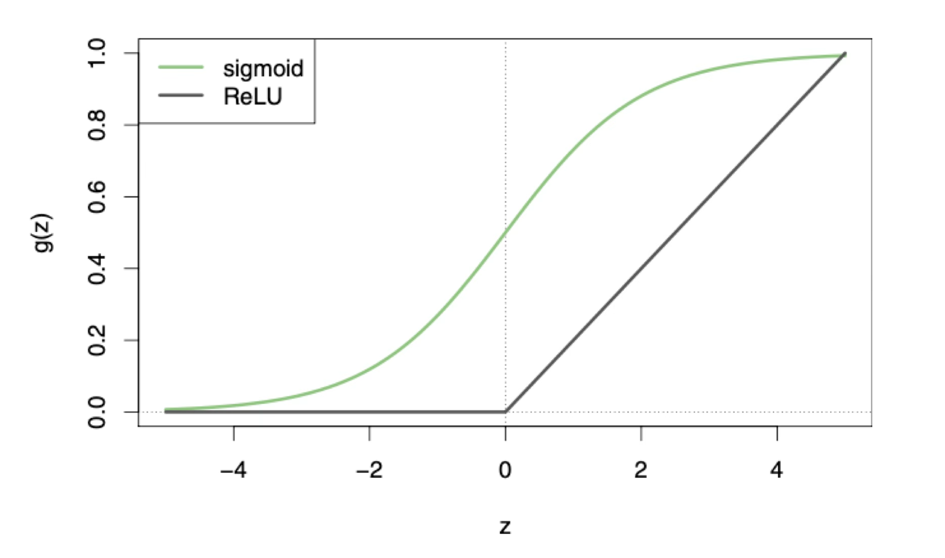 The ReLU function allows for a more computationally efficient training of a NN than the sigmoid function.