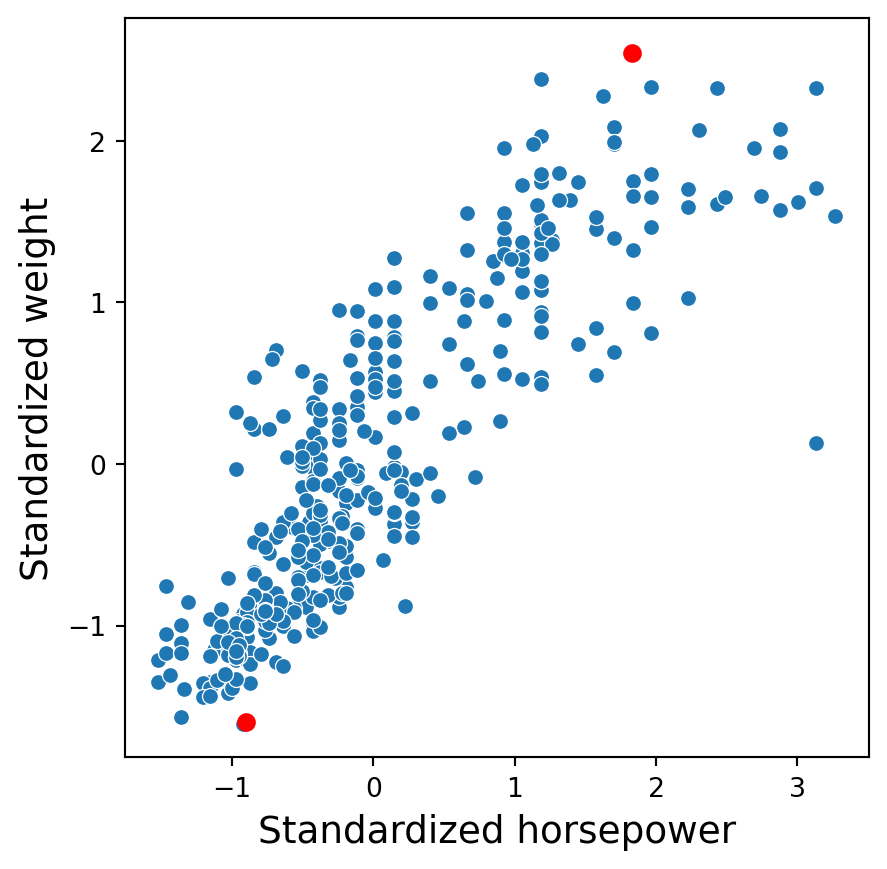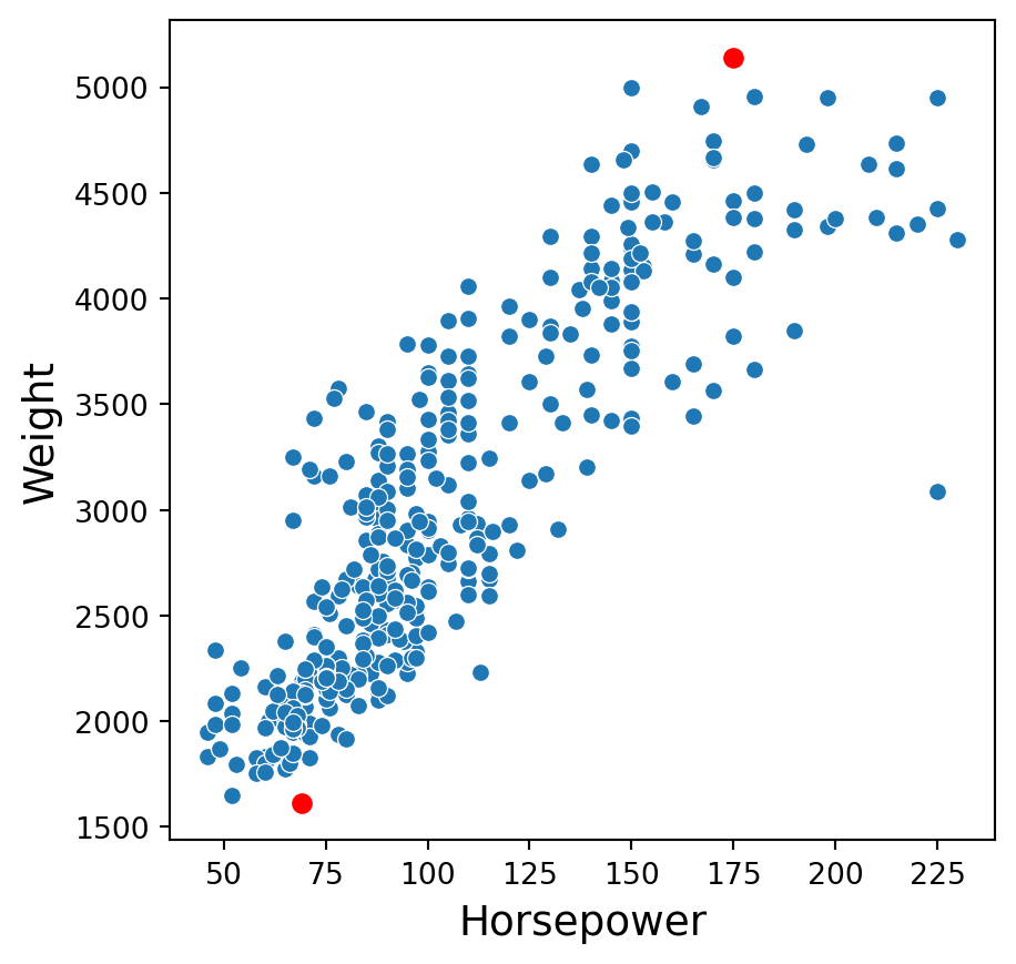 Consider the complete_sbAuto dataset created previously. Consider two points in the plot: \((175, 5140)\) and \((69, 1613)\).
