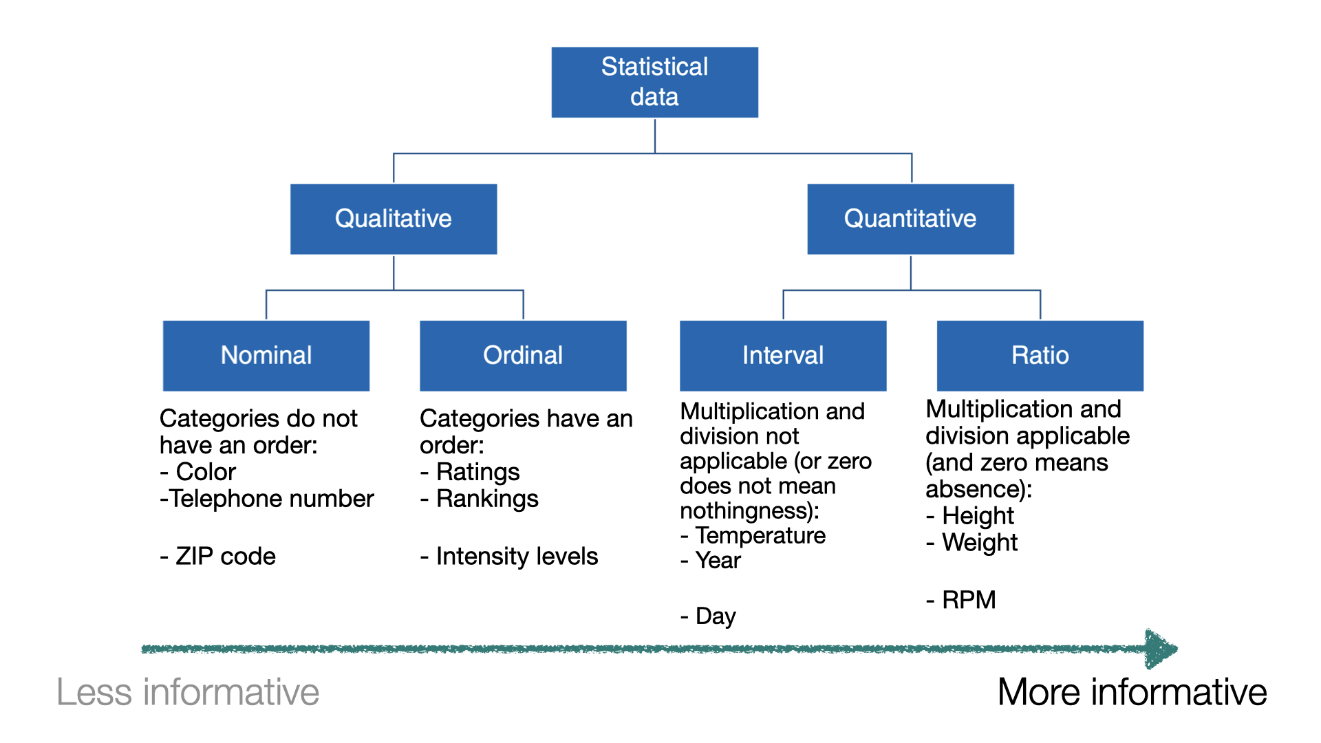 When a numerical quantity designating how much or how many is assigned to each item in the sample, the resulting set of values is numerical or quantitative.