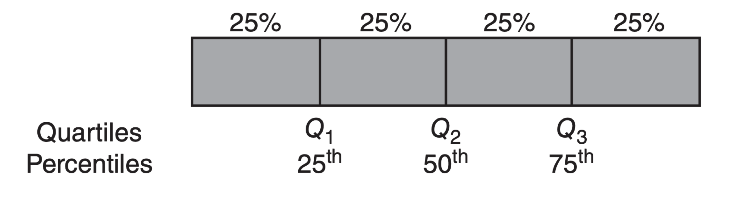 The interquartile range (IQR) is the difference between the third quartile and the first quartile (\(Q_3 - Q_1\)). This is the distance needed to span the middle half of the data.